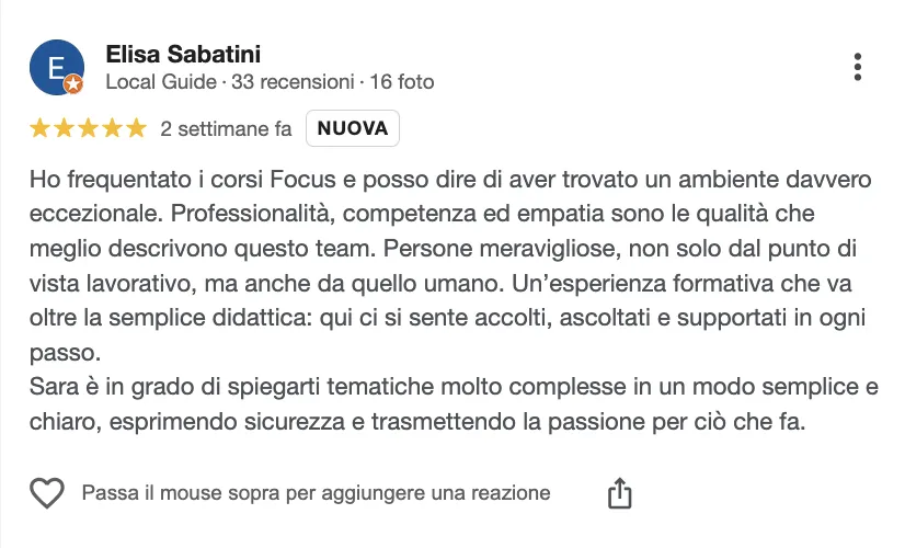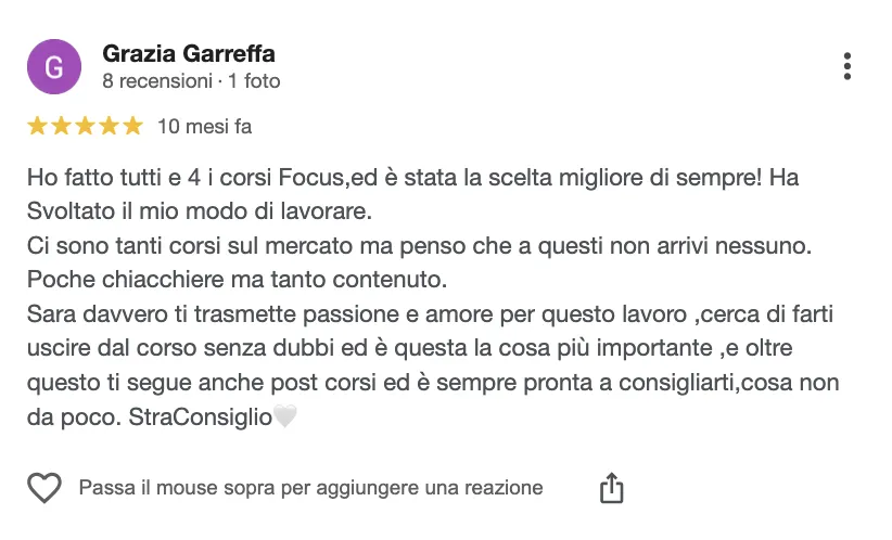 Ogni giornata è una full immersion nell’argomento trattato Strutturata per chiarire ogni dubbio prima della fine del corso.